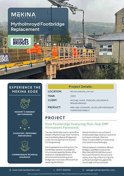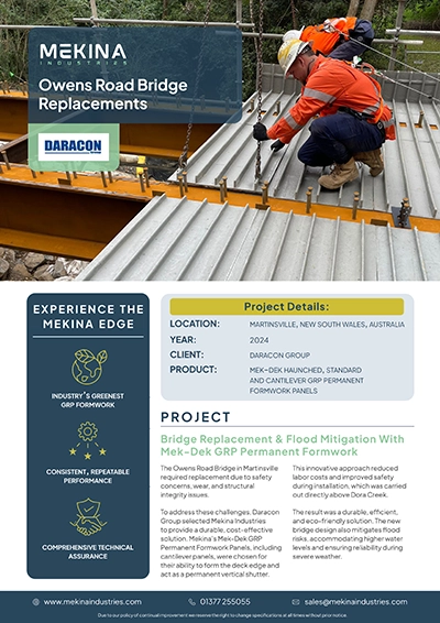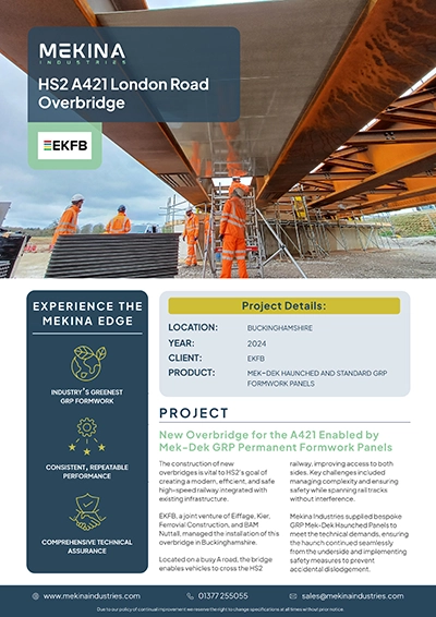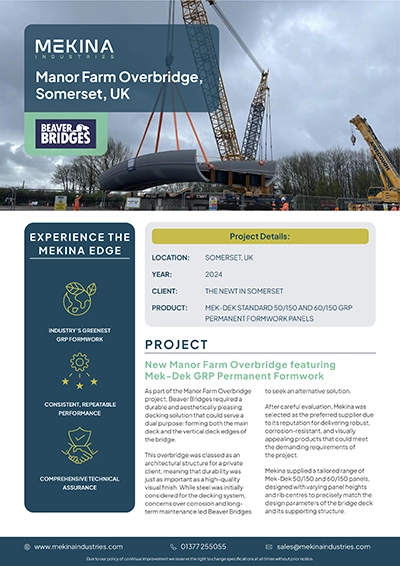 Mekina supplied GRP Permanent Formwork Mek-Dek panels for the construction of a bridge on the…