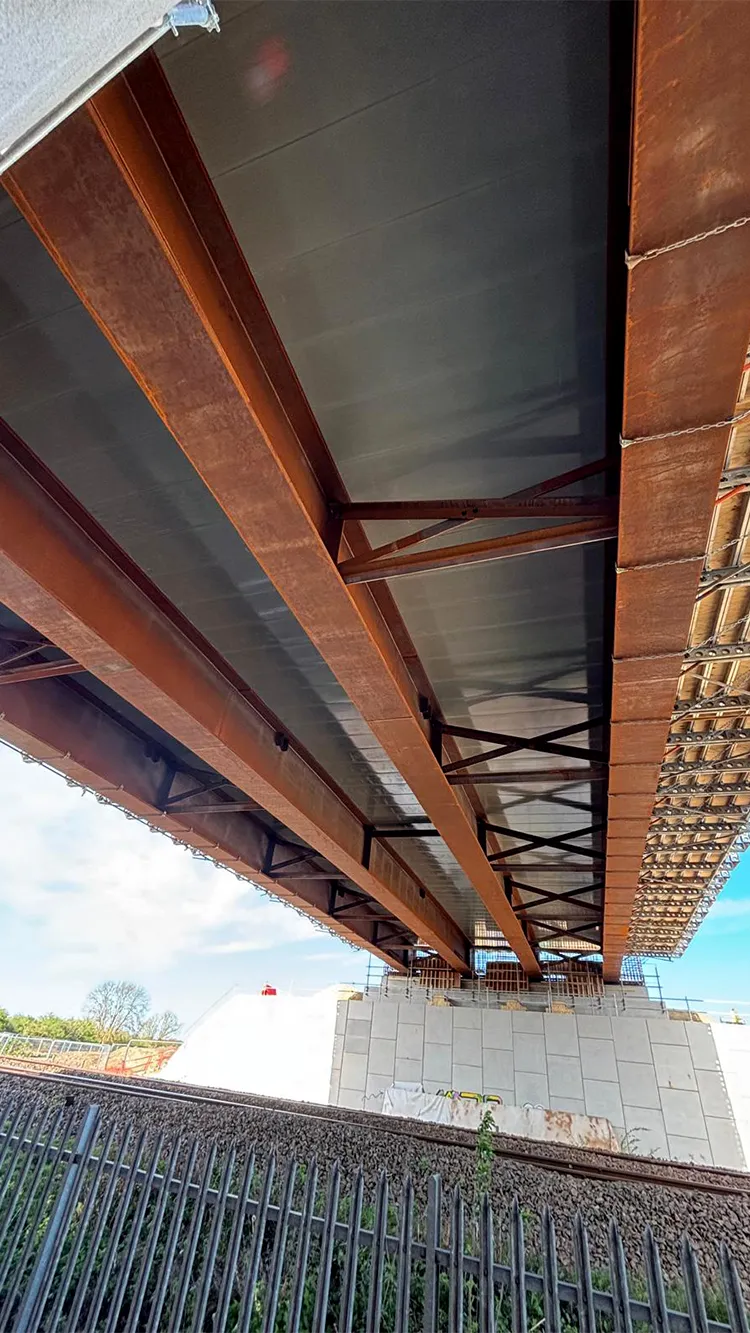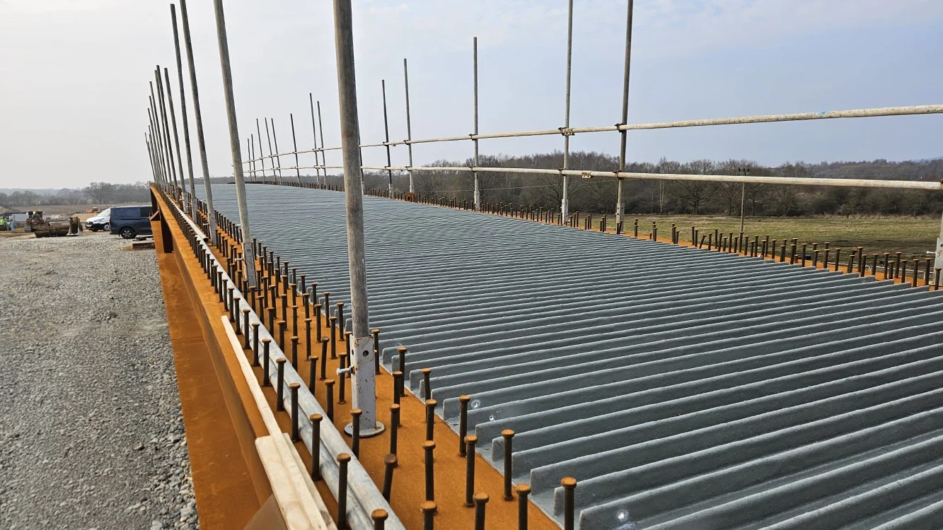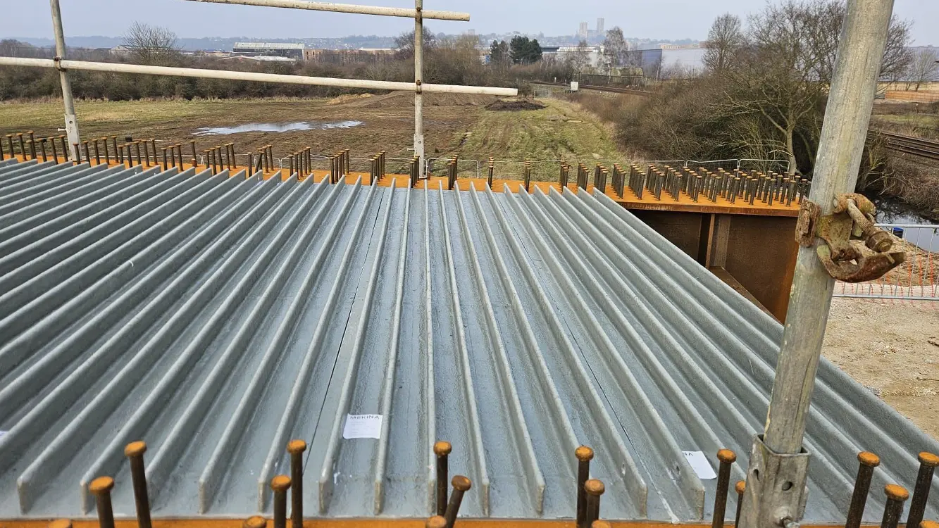 Mekina supplied 162 Mek-Dek 60/125 panels, each measuring 3.2 metres long and produced in a concrete grey finish to match the bridge’s design. Installed directly onto steel beams, the lightweight modular panels ensured efficient installation.